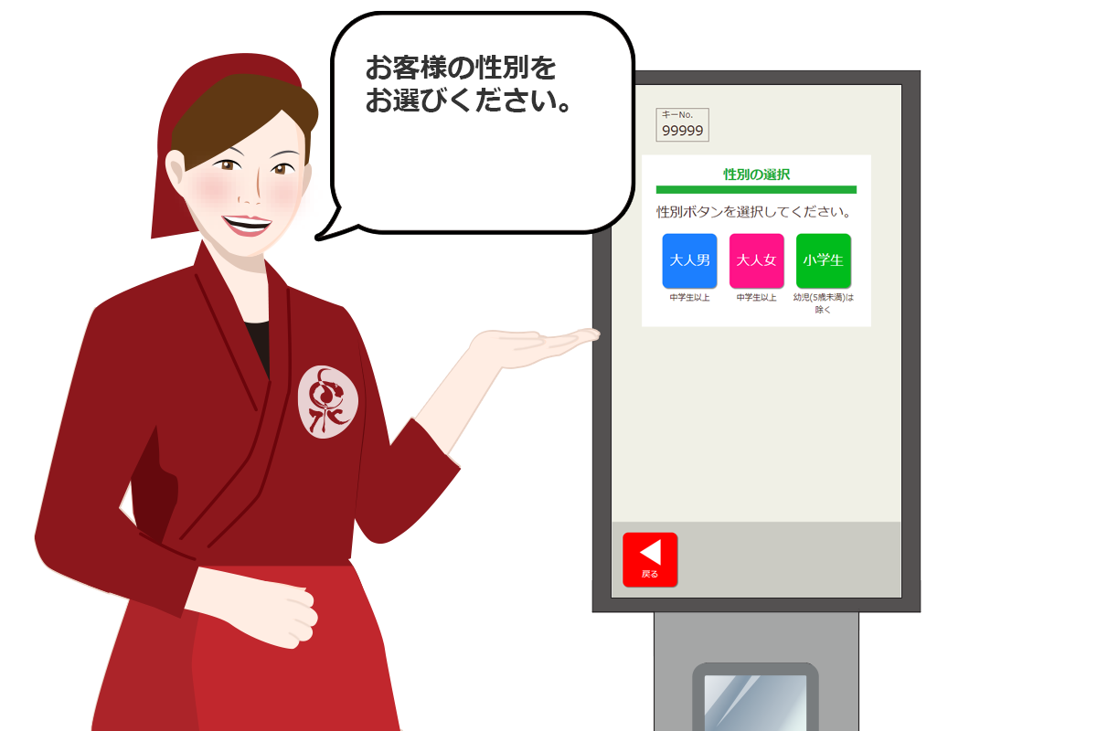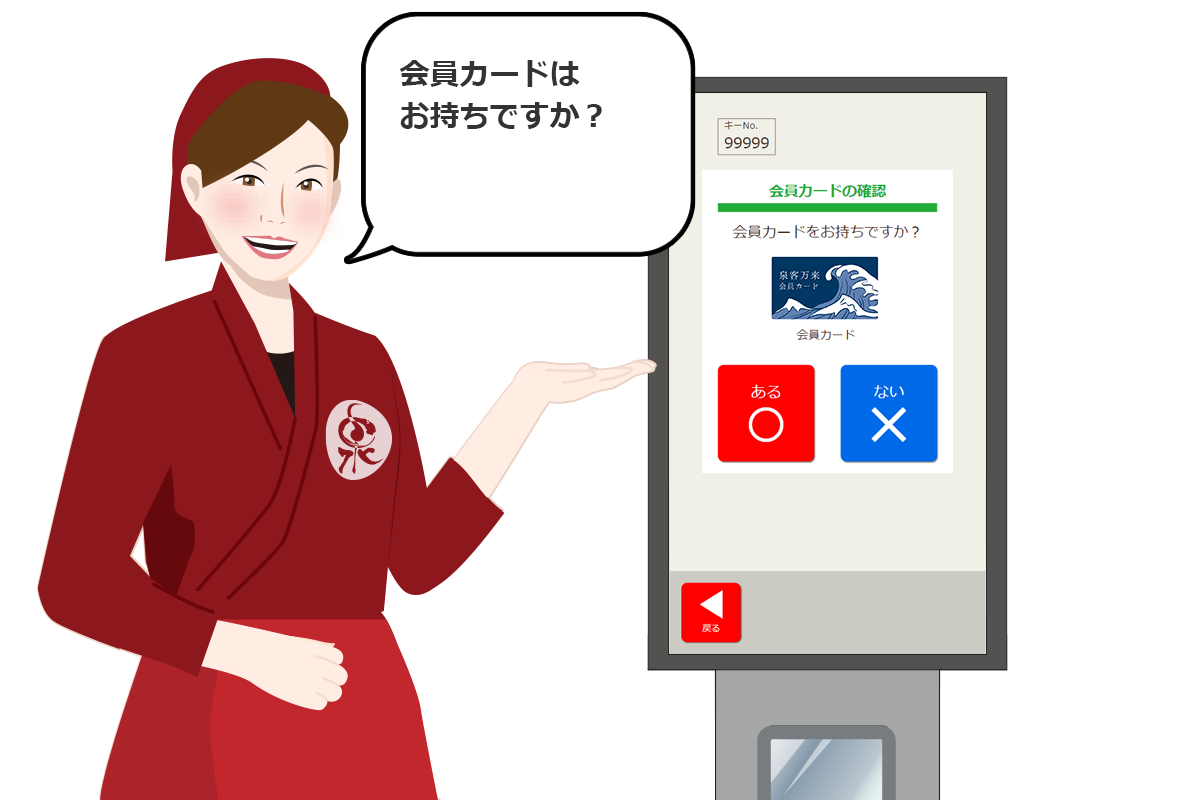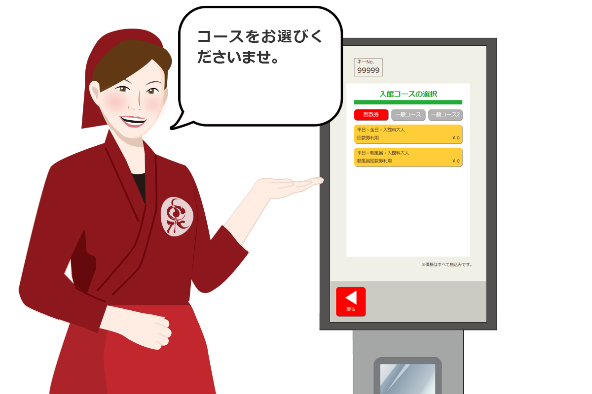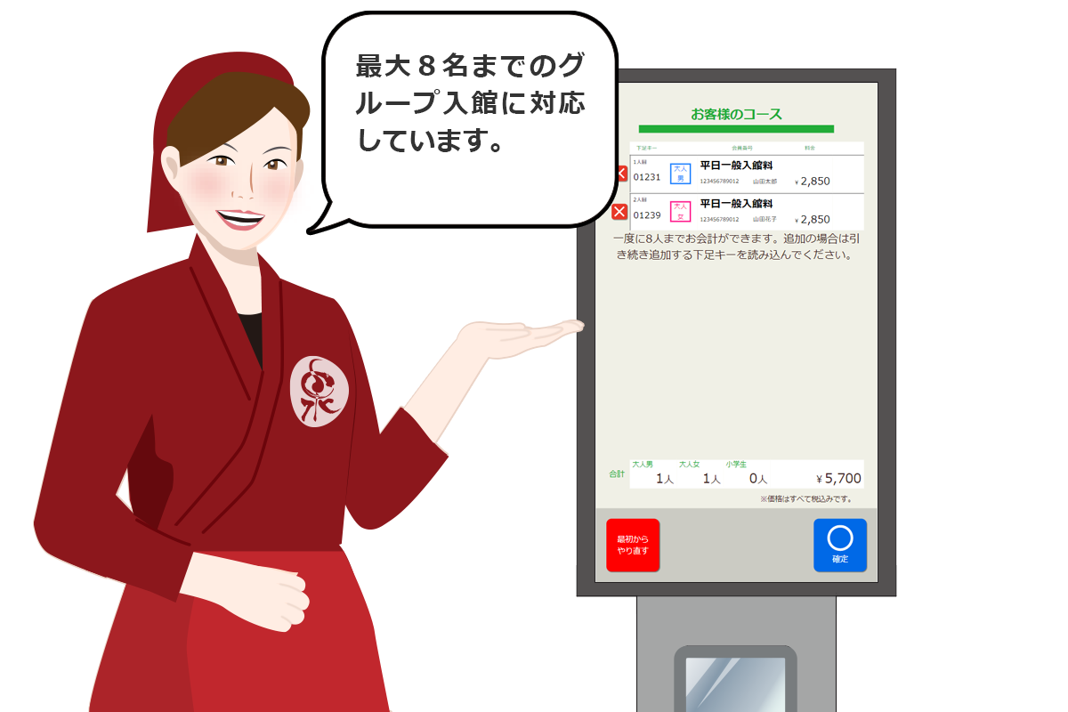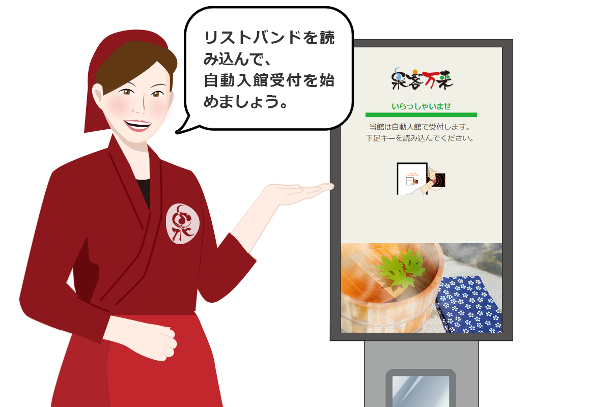 泉客万来の自動入館端末なら、どなたでも簡単に操作可能です。